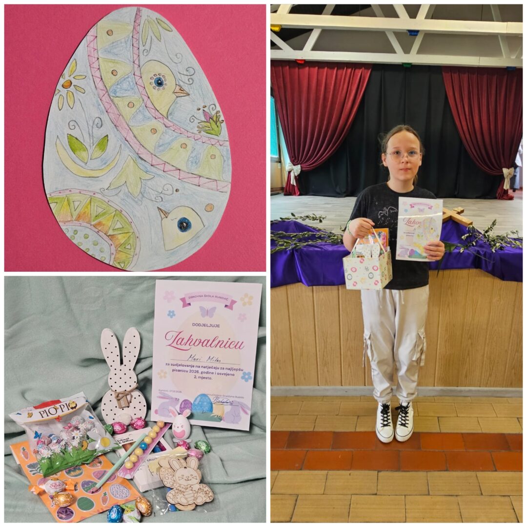 Ovogodišnje preduskrsno vrijeme u našoj školi obilježeno je radošću, kreativnošću i zajedništvom kroz izbor za najljepšu pisanicu. U sklopu nastave Vjeronauka vjeroučiteljica Snježana Bubalo organizirala je izbor za najljepšu pisanicu, u kojem su sudjelovali učenici od prvog do četvrtog te od petog do osmog razreda.
